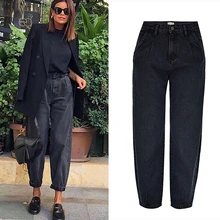Buy Now Spring autumn fashion cotton denim jeans women 2020 new high waist black retro harem washed office lady Casual jeans female Today